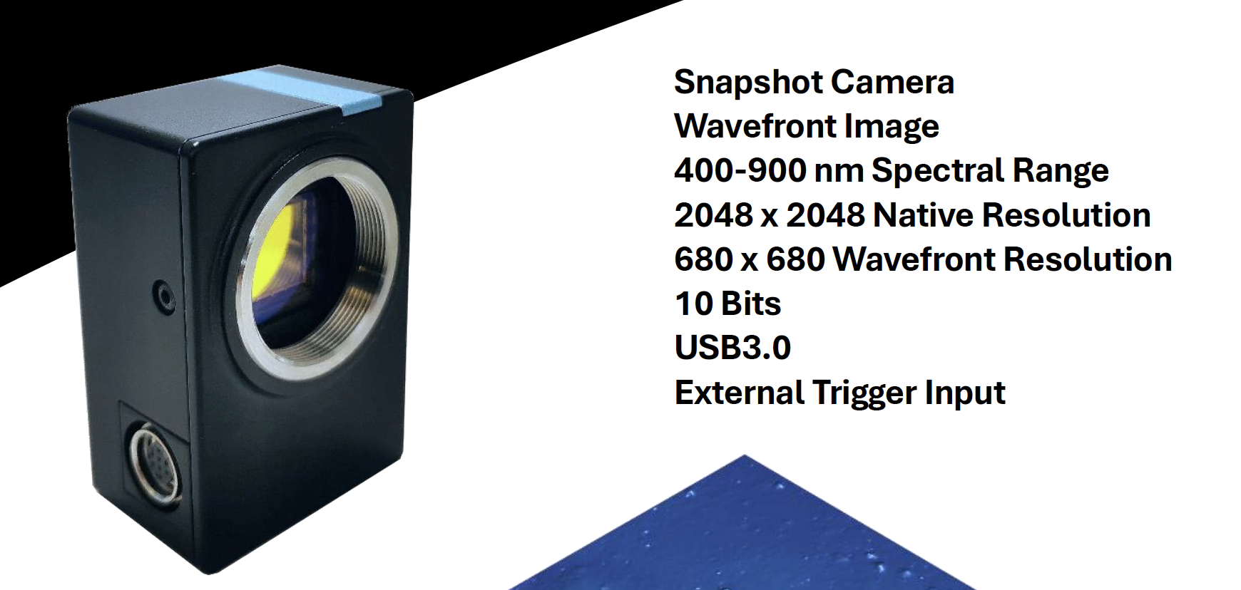 SILIOS 推出的低成本波前成像相机,基于 COLOR-SHADES® 核心技术,适配可见光波段,主打波前显微镜学应用,可从生物观测中提取样本体积与质量相关数据,整机紧凑型设计,搭配免费专属分析软件,支持常规数据传输与外部触发功能。